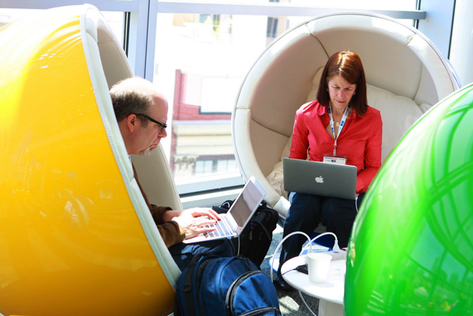 It’s a familiar scene. MacBook-toting journalists, bloggers and guests providing Apple with omnipresence and free advertising at rivals’ events, thanks in large part to the glowing Apple logo on the well-designed notebook family. Who knows, this time next year some of these folks might carry around machines with the Google logo on them if there’s any substance to the whispers of subscription-based Chrome OS notebooks. Check out seven additional Apple sightings below the fold and meet us in comments.