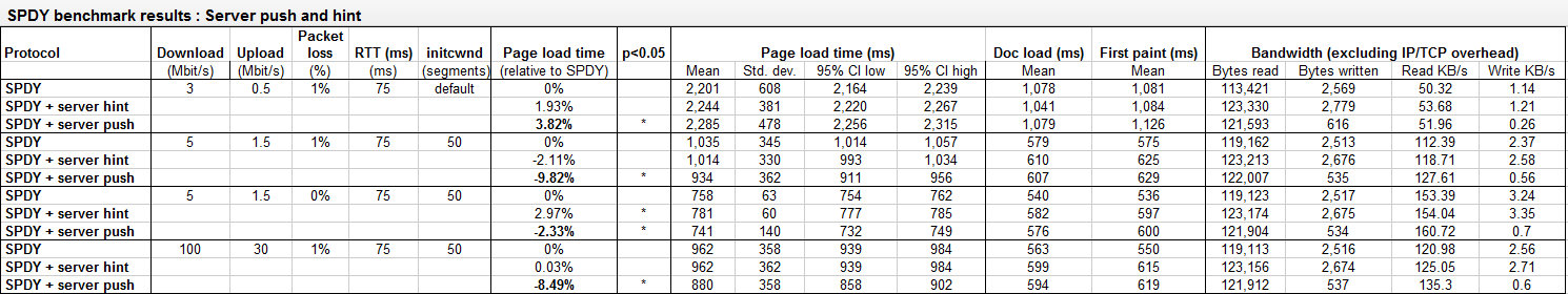 SPDY benchmark results by Matthew Loyd (click for larger)