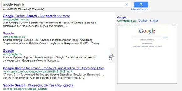 Google Operating System is reporting Google is testing an infinite scrolling feature on their search page. As you can see in the video above — the navigation bar, the search box, and the search options sidebar stays fixed at the top as the user continues to scroll down. Google is also testing a new page preview UI, requiring you to hover over the magnifying glass to see the preview.