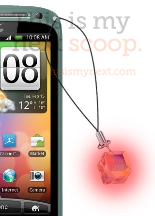The device will come preloaded with apps aimed at women — like a calorie counter and a shopping app. More interestingly, as an accessory there will be a charm that will hang off the phone and lights up when you have a notification (seen after the break).