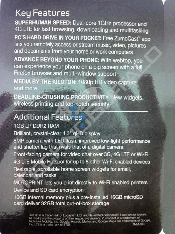 Other things to note is that the Bionic will feature Atrix like connectivity, with the ability to be paired to a computer with an optional dock. This feature will give the Bionic features like wireless printing and a Firefox browser on the laptop. The device will also feature a bedside mode alarm clock feature and HDMI-out. The free Zumocast app will also stream media from your computer.