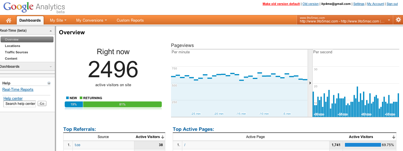 Google has announced on their blog this afternoon that Google Analytics now features real-time data. In the past, Analytics was a great tool for viewing site stats from the past 24 hours, days, weeks, months, etc., but now the ability to see who’s on your site at any given time is an awesome feature.