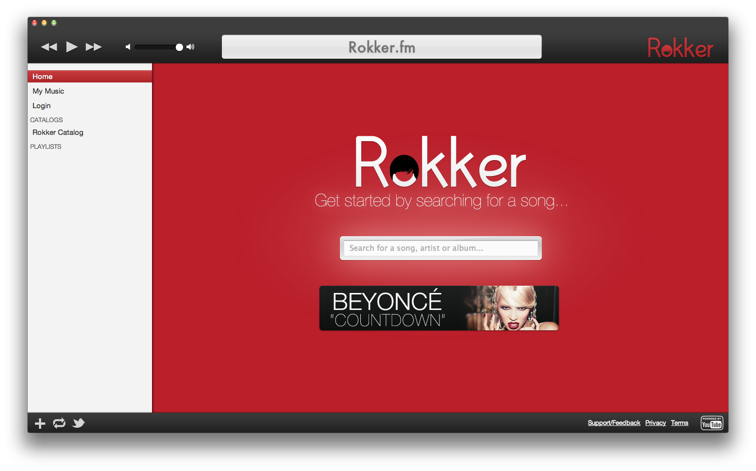 A new web service called Rokker.fm uses YouTube’s vast music library to stream music to users for free. The service is very sleek (still in beta), and reminds us of Spotify and Grooveshark. Since it uses YouTube, Rokker also displays the video in a tiny spot in the bottom right of the page.