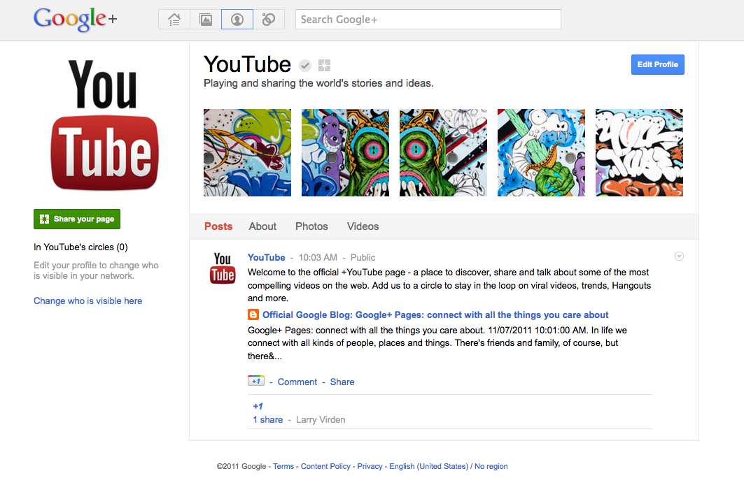 They are inviting you to circle +YouTube “to stay in the loop on viral videos, trends, Hangouts and more”. If you’re a Google+ users, what better way of staying on top of all the latest from news to music to live streamed events than have those updates right in your Google+ feed?