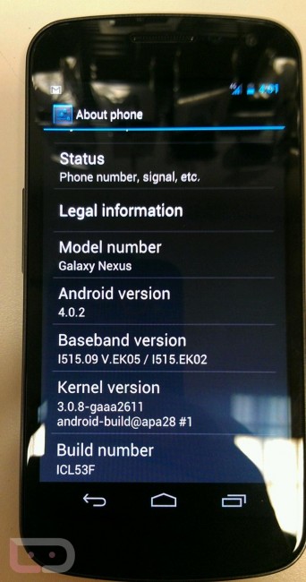 As we inch closer to the US release of the Galaxy Nexus on Verizon, update 4.0.2 of ICS has been pushed to those lucky enough to already get their hands on the device. A Droid-Life reader took the above shot revealing the build number ICL53F. For now it looks like the update is just bug fixes. Is this the update Verizon was looking for to launch the Galaxy Nexus?