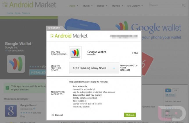 The Sprint version of the Galaxy Nexus is the only variant to officially see Google Wallet. However, a new report from Droid-Life said the GSM Galaxy Nexus with an AT&T SIM card can download and access Google Wallet from the Android Market, which is a sigh of relief for many users. As you can see in the screenshot above, courtesy of Droid-Life, there are not any hoops–just a simple download.