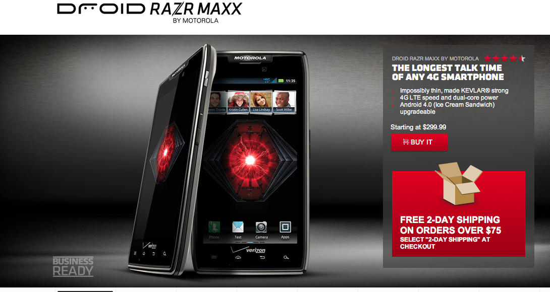 Consumer Reports is a nifty website that provides product tests and update availability while serving as a general buying guide for consumer electronics and gadgets, and it just announced the Motorola Droid Razr Maxx as its highest-scoring Verizon Wireless smartphone.