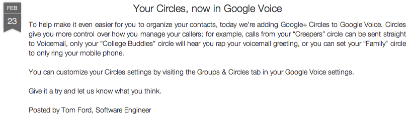 Google announced today that it is adding Google+ Circles to Google Voice.