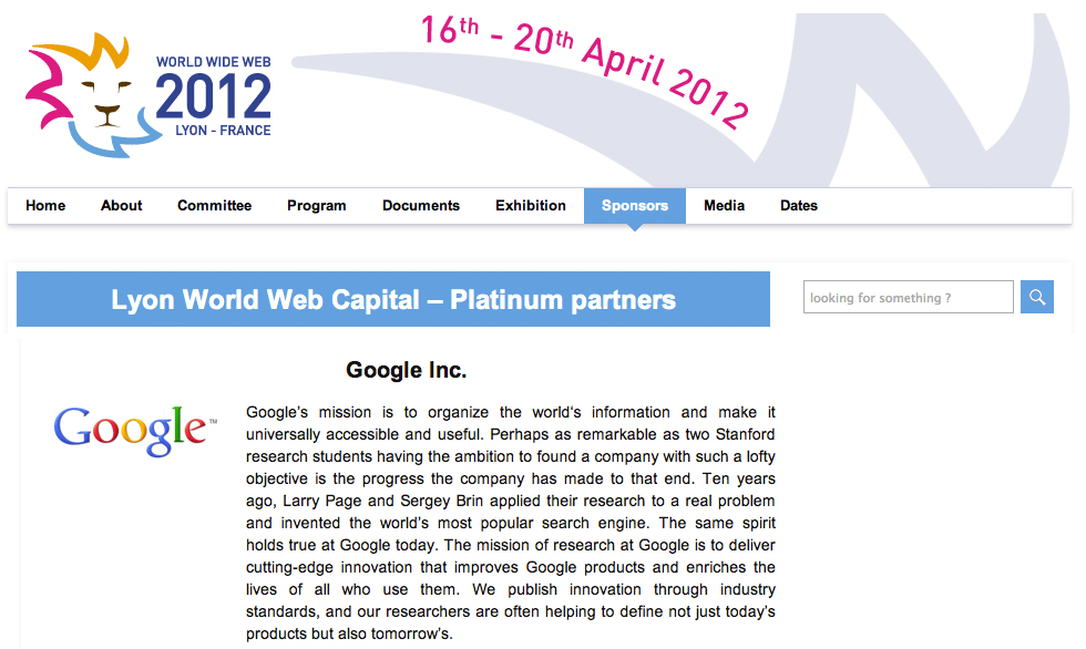 Google just announced, well, boasted, about its involvement with the 2012 World Wide Web conference that occurred last month.
