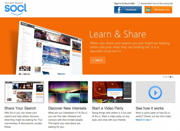 In the shadow of Facebook’s huge week, the folks in Redmond launched their new social network offering today, called “Socl” (pronounced social).