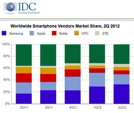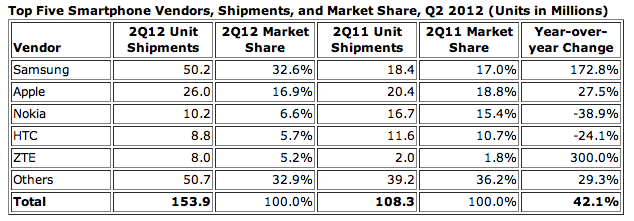 One of the report’s main headliners is that phones are shipping faster than in previous years. About 406 million units shipped in Q2 2012—up from 401.8 million units in Q2 2011. Smartphone shipments also eyed a large year-over-year increase with a 42 percent gain.