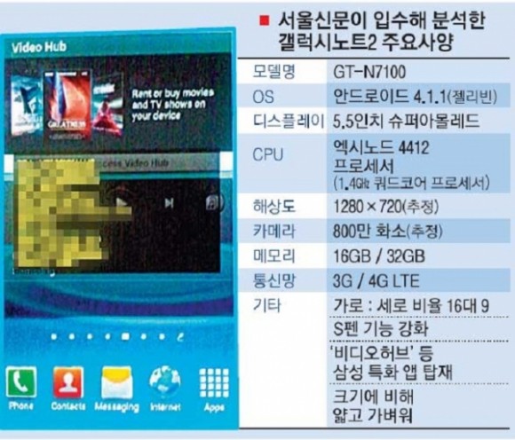Samsung is expected to announce the all-new Galaxy Note 2 at its Samsung Unpacked event at IFA on Aug. 29. Ahead of the expected announcement, Seoul Newspaper claims to have its hands on the official specs for the phablet. According to the publication, the Galaxy Note 2 will feature a 5.5-inch 1,280-by-720 display, as previously rumored, as well as a 1.4 GHz quadcore Exynos processor, 8-megapixel shooter, 3G/4G connectivity, 16GB/32GB variants and Android 4.1 Jelly Bean. …Pretty much on tap with what we heard. Check out the leaked spec sheet: