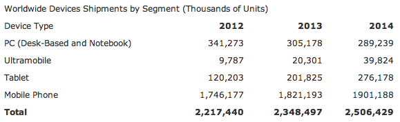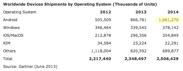 A forecast published today by market intelligence company Gartner suggests that a billion Android devices could be shipped in 2014.