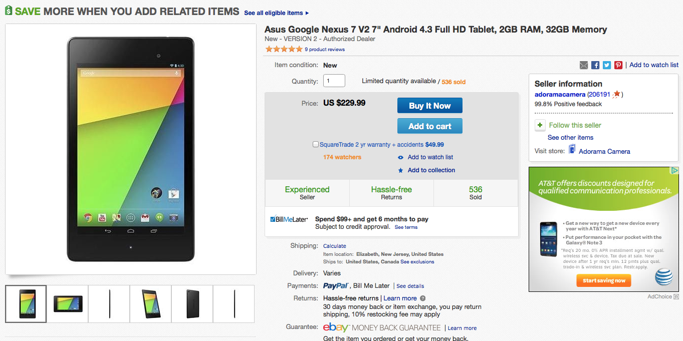 There’s plenty of good Cyber Monday deals to be had and more will likely pop up as the day continues, but this 2013 Nexus 7 is one of the good ones. Offering $60 and $40 discounts, the free shipping offer includes both the 16GB and 32GB models. We should note that the 16GB version from ShopDivvy (tax in North Dakota) is a manufacturer refurb and comes ASUS re-certified and with the ASUS warranty. The 32GB model from Adorama is new and tax only applies New Jersey.