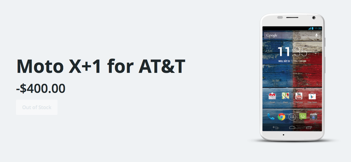 A store listing on Motorola’s website (via Droid Life) has given us an early look at the currently-unannounced Moto X+1, which will be available on AT&T whenever it’s finally made public. The phone looks very similar to the current Moto X, so most of the big changes to the device will presumably be under-the-hood.