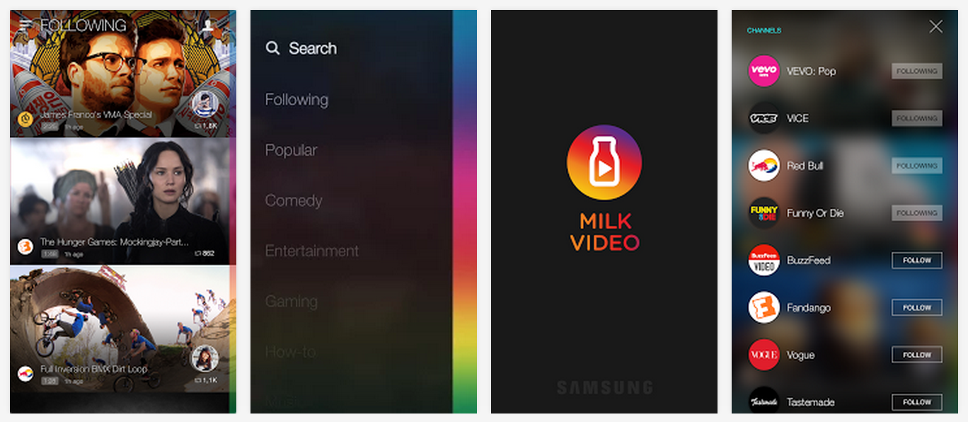 Milk Video is available through Google Play now for users in the US with one of the following Samsung devices: Galaxy Note® II, Galaxy Note® 3, Galaxy Note® 4, Galaxy Note® Edge, Galaxy Mega™, Galaxy S® III, Galaxy S® 4, Galaxy S® 4 mini, Galaxy S® III mini and Galaxy S® 5 devices.