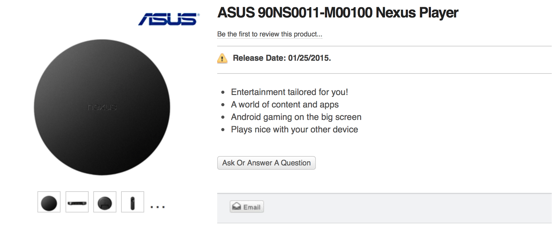Google’s Nexus Player has appeared on Newegg’s online store in preparation for a January 25th release, and appears to be showing up in some Walmart stores as well. The $99 streaming device was first announced last year and is currently available through Google’s Play Store.