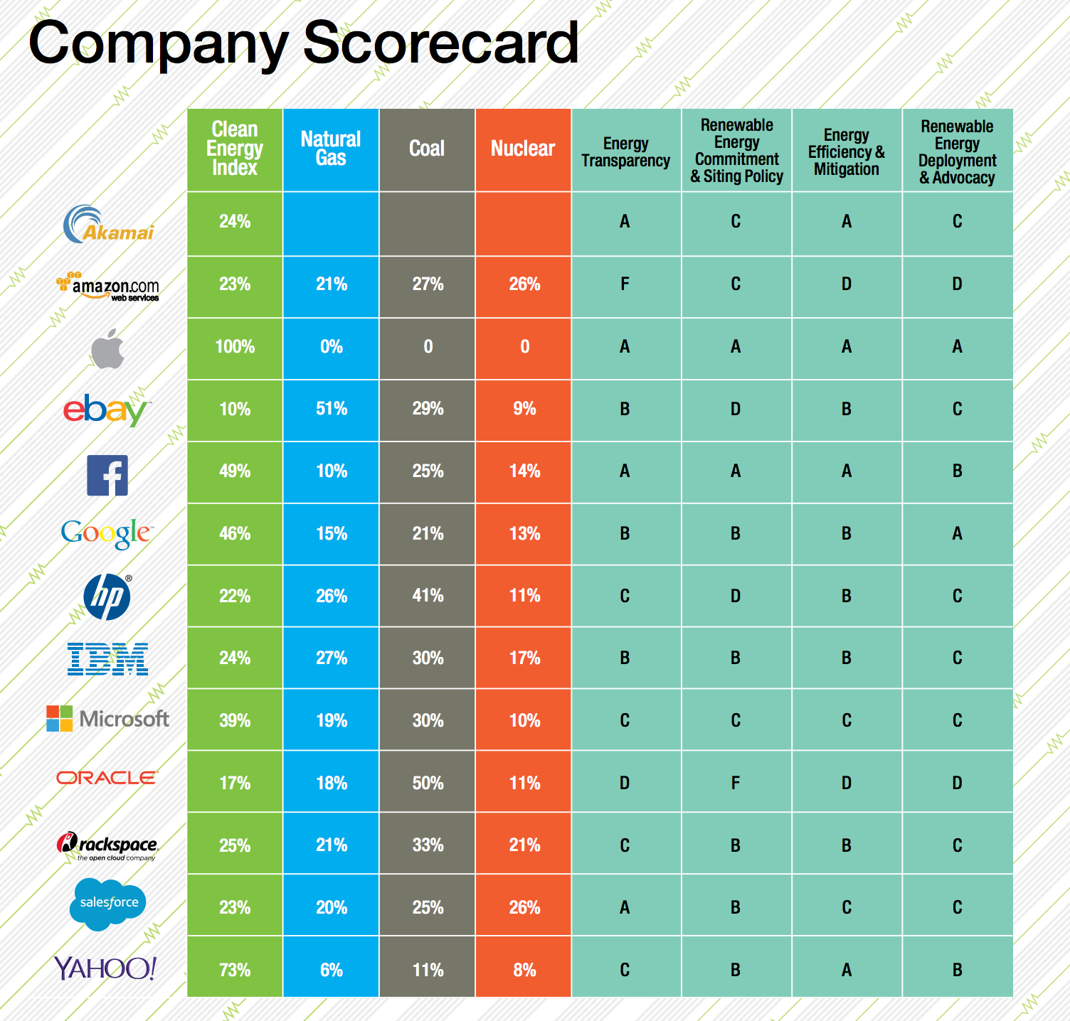 And here’s Google’s score card for its specific data centers compared to Apple (click for full size):