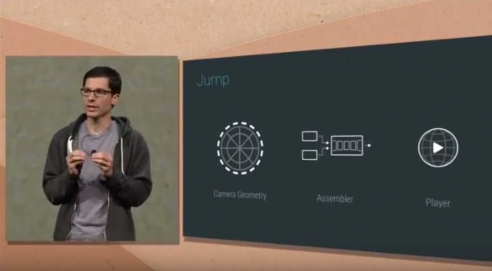 Jump isn’t just the model for building a VR camera rig, though. There are three parts, all of which Google has built out, that cover every base from recording to editing to sharing with the world: a camera rig specification with very specialized geometry, an assembler which stitches raw footage from the camera into VR video, and finally a player through which people can actually experience the 360-degree, immersive video.