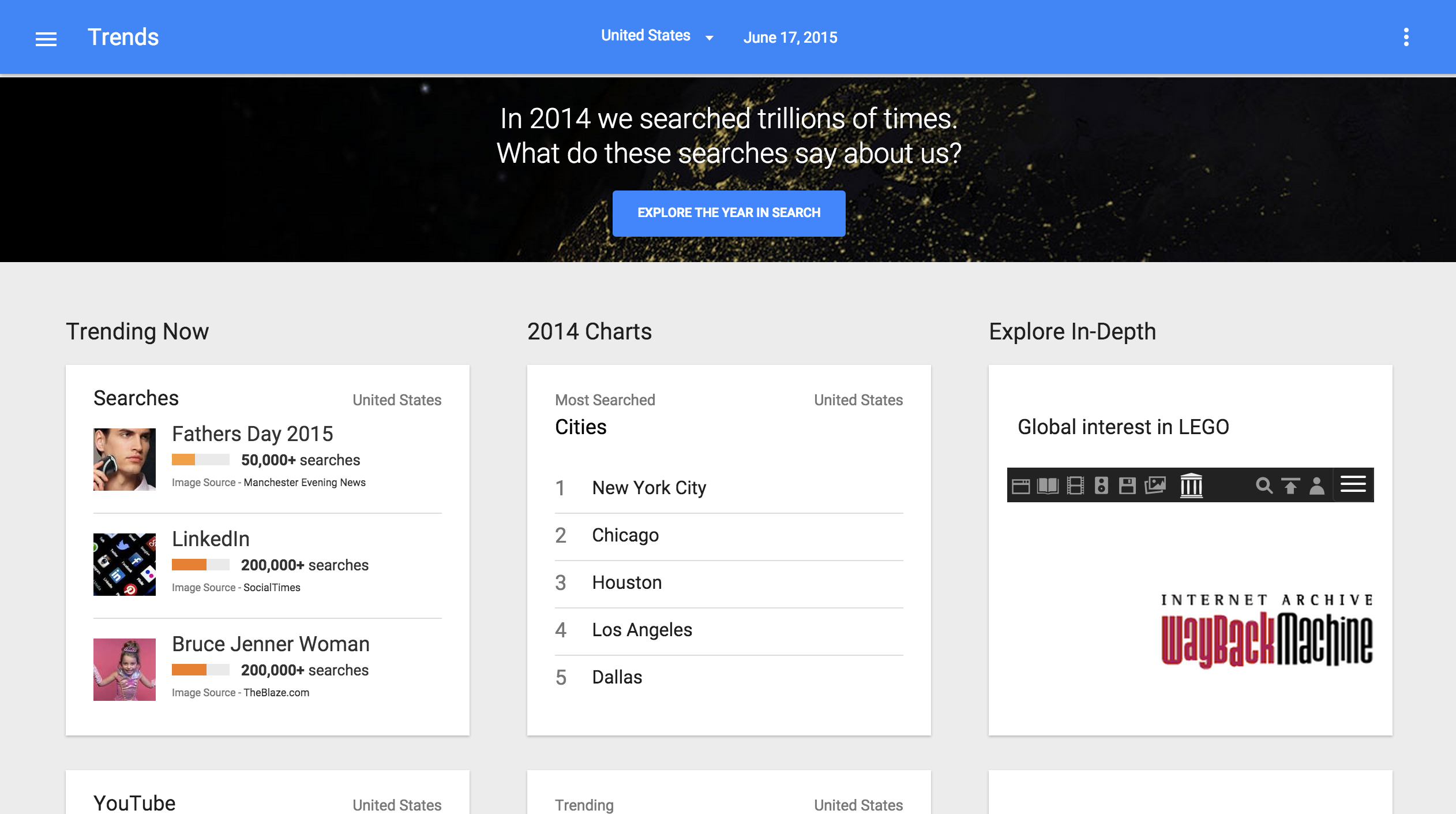 The most immediate change you’ll notice, though, is in the addition of more Material Design styling. Here’s what Trends looked like before today, courtesy of Wayback Machine (some of the graphs couldn’t be crawled):