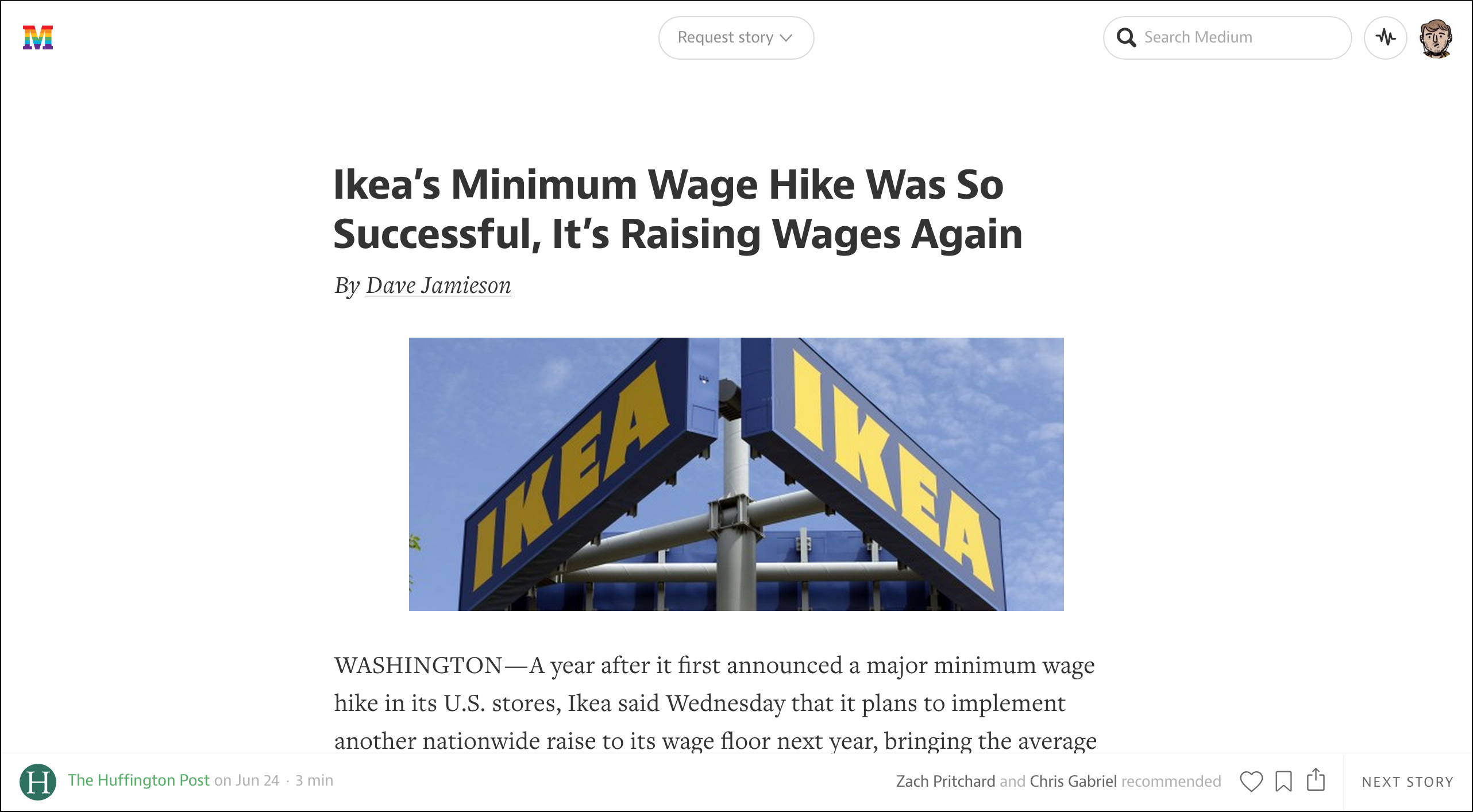 Even if you aren’t familiar with the company you’ve almost certainly seen articles hosted on the site or on websites inspired by Medium. Its content management system and article formatting features some of the most lauded design in the industry, famous for being incredibly clean, crisp, and bold with large images and headers. Here’s an example on desktop:
