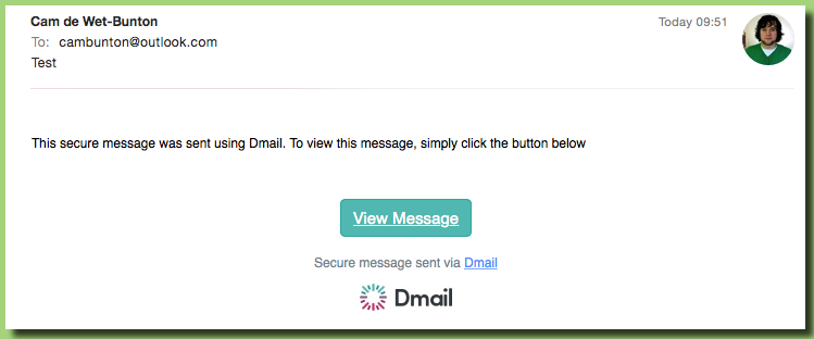 They can see it’s clearly from you, and the subject line appears as normal. Because the email shows up in their inbox as being from you, they can just reply to it as normal and it’ll show as part of any email conversation thread the two of you have going. If they’re concerned that it’s a little ‘phishy’ looking, they can always text/call you to double check. Assuming they’re not at all suspicious, they click the ‘view message’ link and it opens a web page with the email displayed like this:
