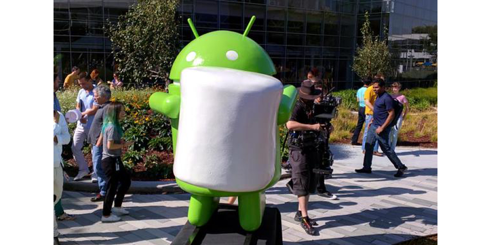 Android M’s software features have already been announced, but what hasn’t been announced is what the ‘M’ stands for. In our early poll, you decided Marshmallow was the most likely choice, and that’s what Google’s gone with. Earlier today, Jeff Sharkey shared a photo of the covered statue on Google Plus, and now the tarp is off! It’s our favorite green robot clutching on to a Marshmallow.