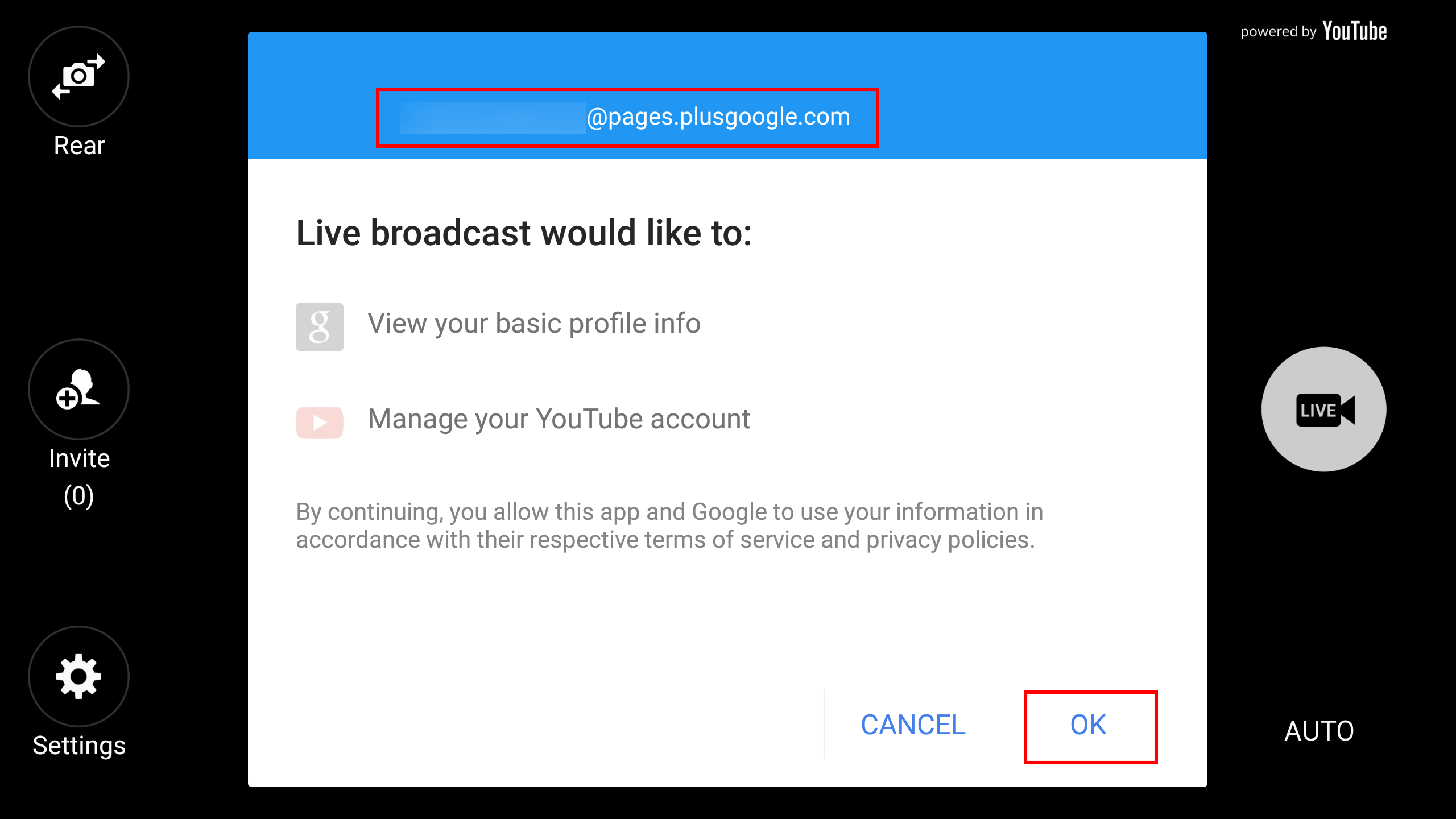Once added, choose the new account from the Camera’s live stream settings (if/when prompted) and agree to the Live Broadcast permissions.