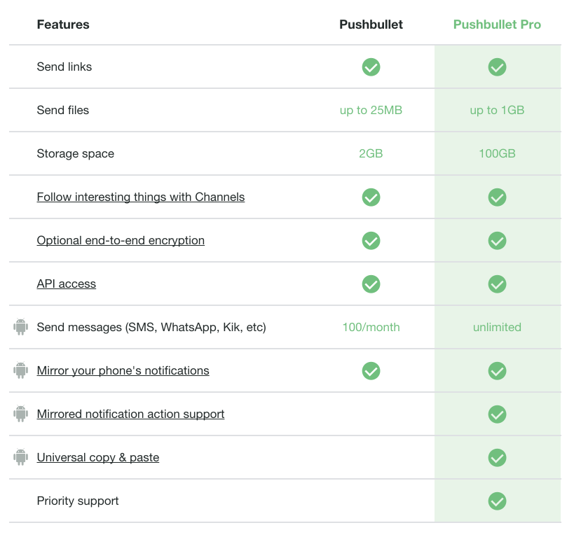 So what does the new tier offer? Well, as I already mentioned, there aren’t really any new features here. That said, a few features, most notably mirrored notification action support and universal copy & paste, are now restricted to only those that go pro. Pro users will also be able to send files up to 1 GB in size, as well as send unlimited messages through the service (limited to 100 for free users).