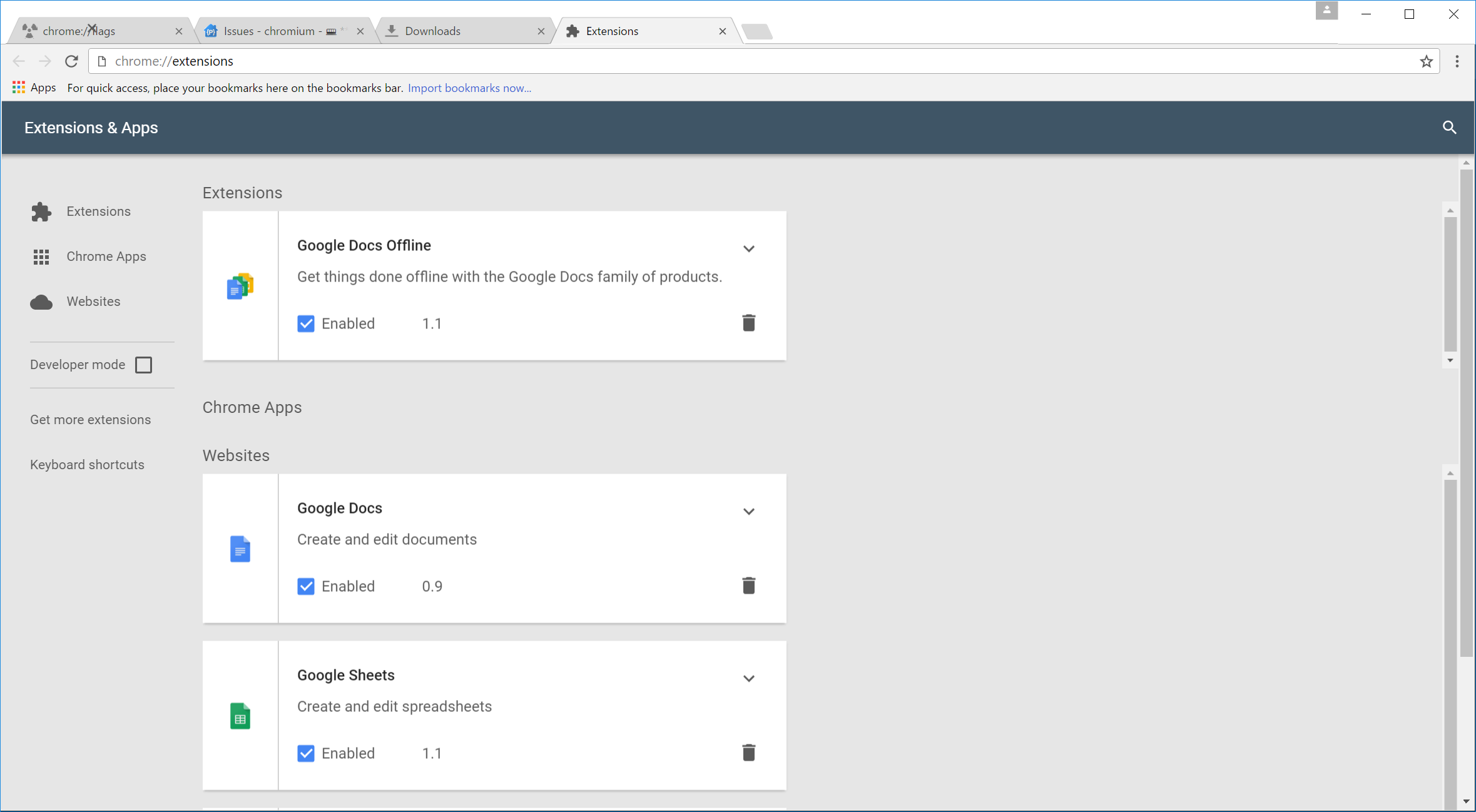 As seen in the below screen cap, the Extensions page – as well as Downloads, Settings, and History – has been heavily simplified, making use of simple cards and color according to the company’s design guidelines.