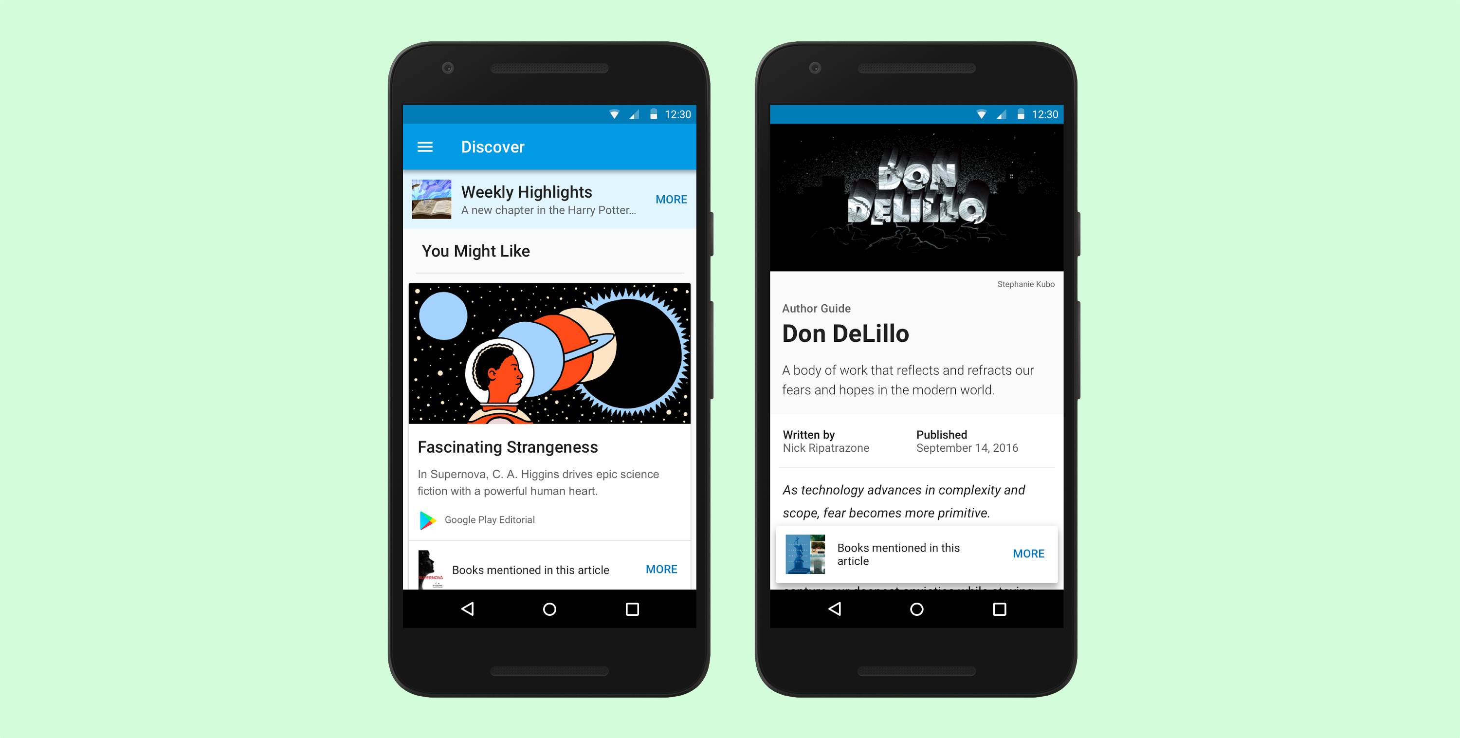 Discover “identifies news, reviews, lists, and videos about books” from “trusted sources,” Google says, and presents these stories to you in a way that’s easy to digest. And the feature doesn’t just make guesses — it intelligently uses the books you’ve already read in Google Play Books to determine the stories you’re presented with.