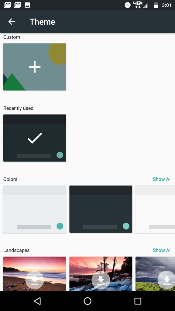 Additionally, Themes receive a big update with the picker being revamped with slide pickers and a way to access recently used themes. A new ‘Landscapes’ section highlights how users can use their own background image with some pre-made high-resolution ones from Google. At the moment, 10 landscapes are available for download.