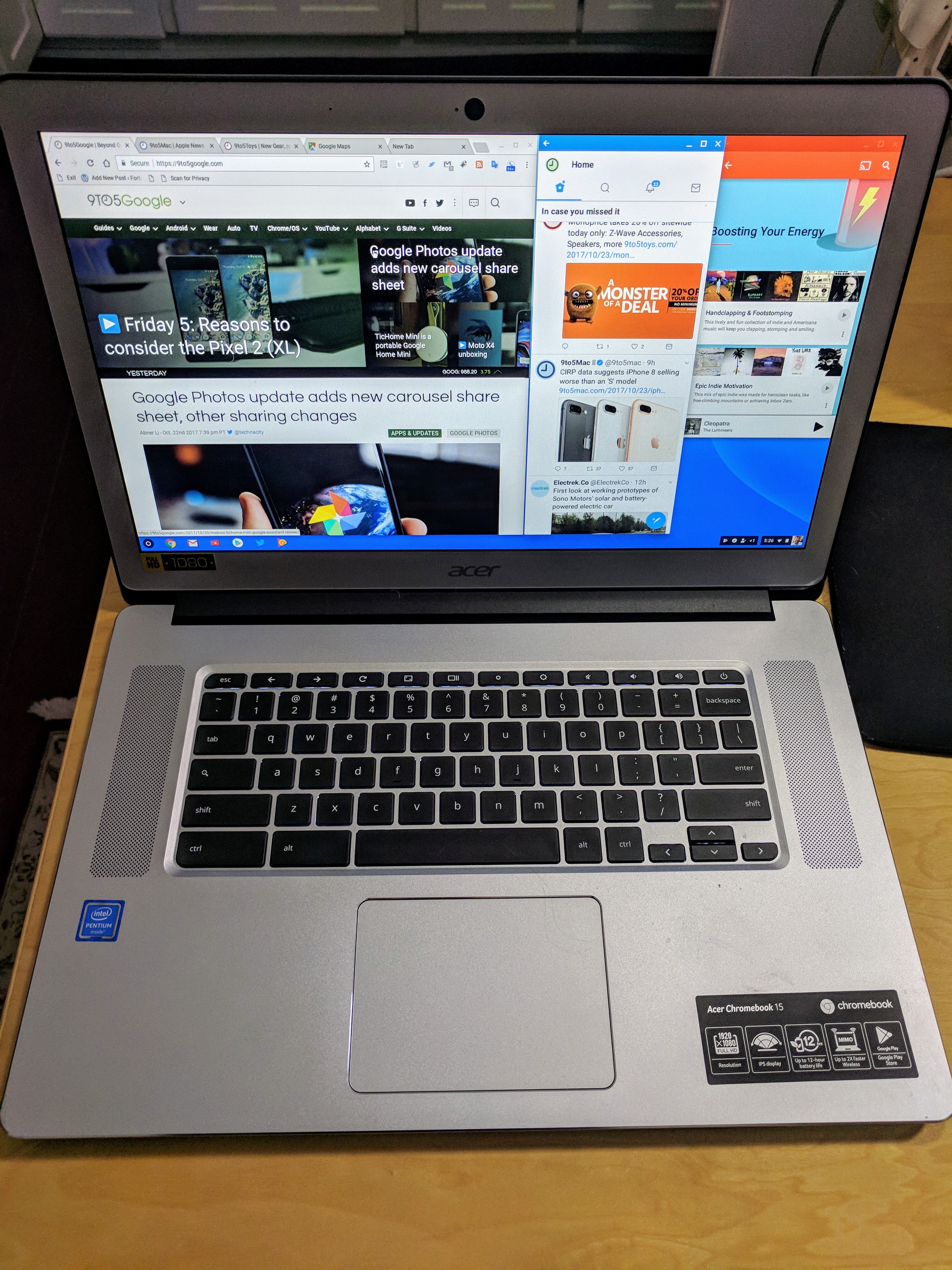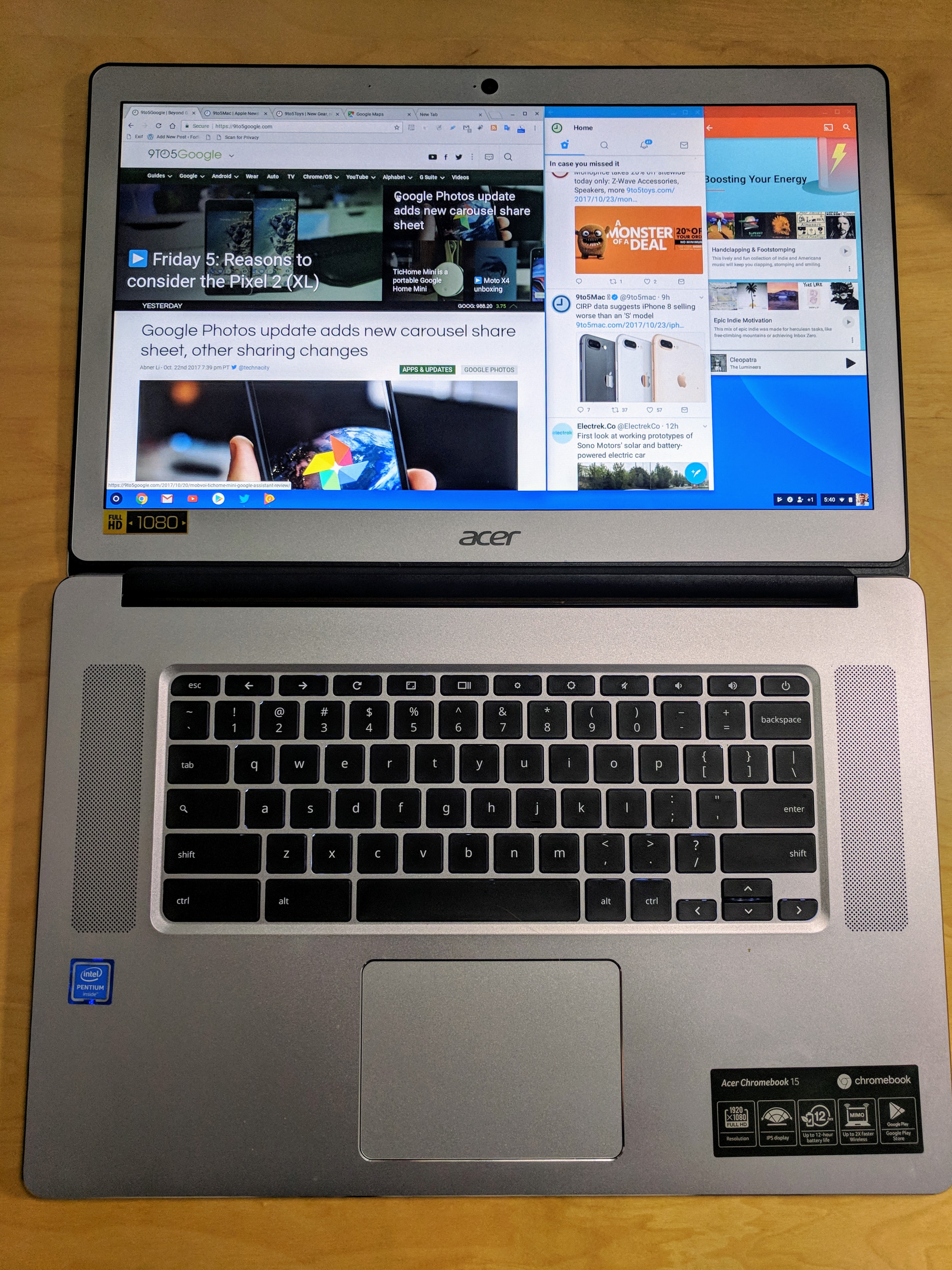 The overarching problem for folks who want a good Chromebook is that there are a ton of $200 low-end Chromebooks and of course Google’s $1000 Pixelbook at the top but not a whole lot in between for people who can’t drop MacBook type cash. Samsung’s Chromebook Pro and HP’s Chromebook 13 come to mind but what if you want a 15-inch display that can put 2 browser windows side-by-side?