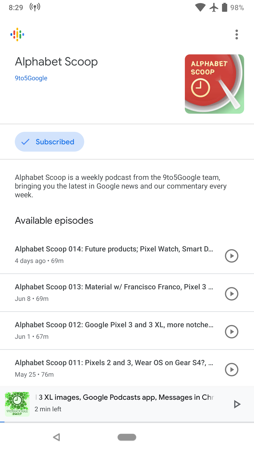 Meanwhile, with today’s launch, Google detailed other aspects, including how there are 2 million podcasts in the app. The company is also launching the Google Podcasts creator program “to help promote inclusive storytelling in podcasting.” A sign-up form is available today with more details coming over the summer.