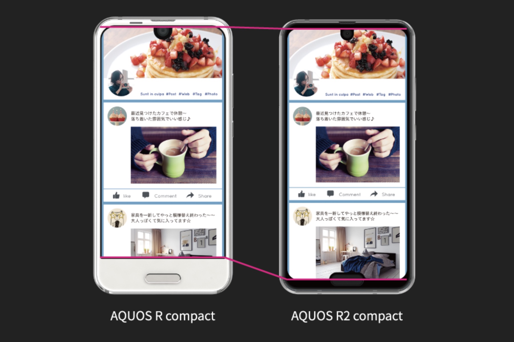 Sharp, reasonably, felt the need to justify the second notch by offering a helpful side-by-side comparison of the Aquos R2 Compact and its predecessor.