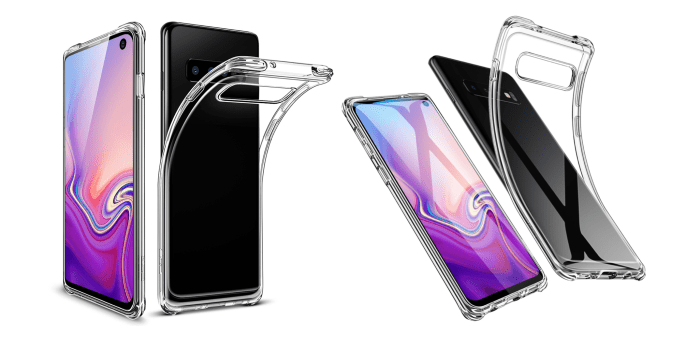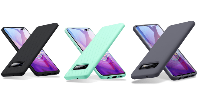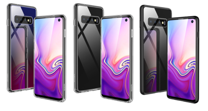 ESR Gear’s tempered glass case mimics the sleek glass back of the the S10. Its durable 9H-hard tempered-glass back is pretty much immune to scratches and scuffs. Air-Guard corners, silicone bumpers and raised edges provide added protection in the most crucial spots. The Mimic Tempered Glass Case is available in three different color options (pictured above): Skyfire Gem, Clear and Black Frame (with side grip).