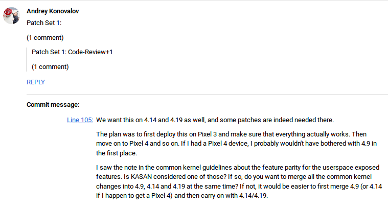 The code change itself tells us very little about the future device, as it has to do with changes being made to the Linux kernel used by Android. From the rest of the conversation, we can see that a fix is being developed for an issue with Google’s “KASAN” memory error detection tool.