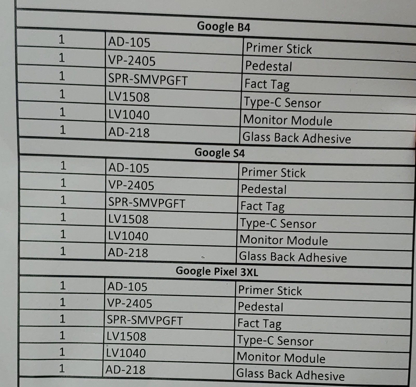 The internal document, sent to Android Police via an anonymous tipster, appears to explain the materials needed for different “Google” advertisements to be shown in-store. The paper lists three different advertisements—”Google B4,” “Google S4,” and “Google Pixel 3XL.”