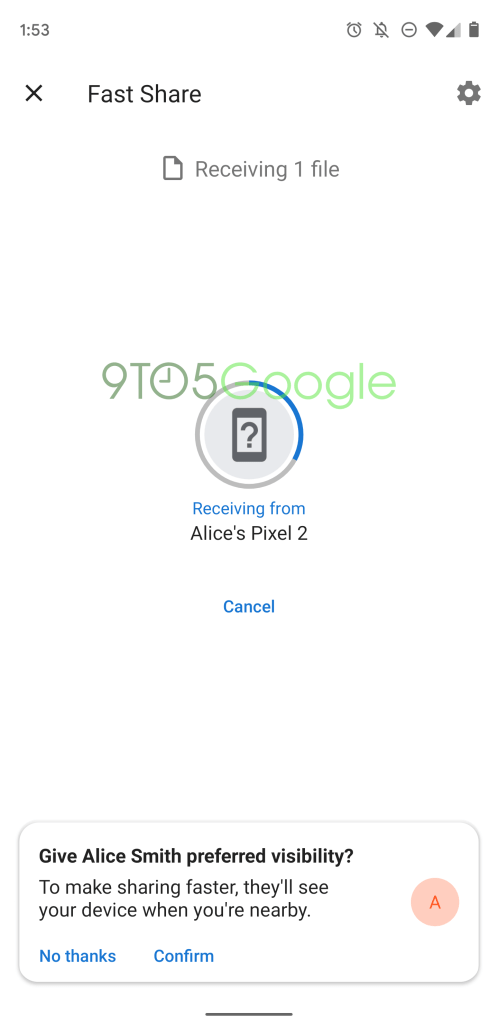 On the safety and security front, Fast Share lets you give “Preferred Visibility” to people that are frequent senders. Settings for the feature are available in the top-right corner of the main sharing interface.