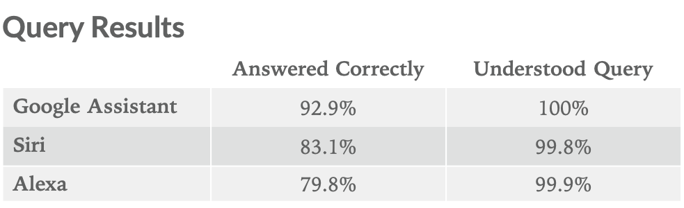 Just like last year, the Google Assistant scored a perfect 100% on the ability to at least understand what was said, but Siri and Alexa came close behind at 99.8% and 99.9% respectively. It surely won’t be long before we no longer need to question whether a voice assistant can understand you perfectly. Google themselves have been making strides toward this being possible for larger groups of people, with efforts like Project Euphonia.