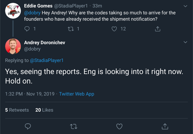 Additionally, product manager for Google Stadia Andrey Doronichev briefly shared, then deleted, a statement that their engineering team was actively looking into the problem.