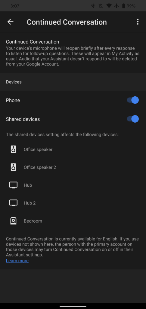 We have confirmed that this is not the faster, on-device Assistant that’s currently only available on the Pixel 4 — and expected on the 4a — as Continued Conversation is not available on phones with this new design.