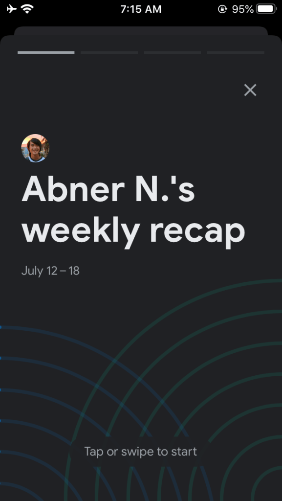 At the start of the week, which can be manually set, users will encounter a “Your weekly recap” card with rather delightful blue and mint radial graphics. It appears in the Home feed and notes the time range covered.
