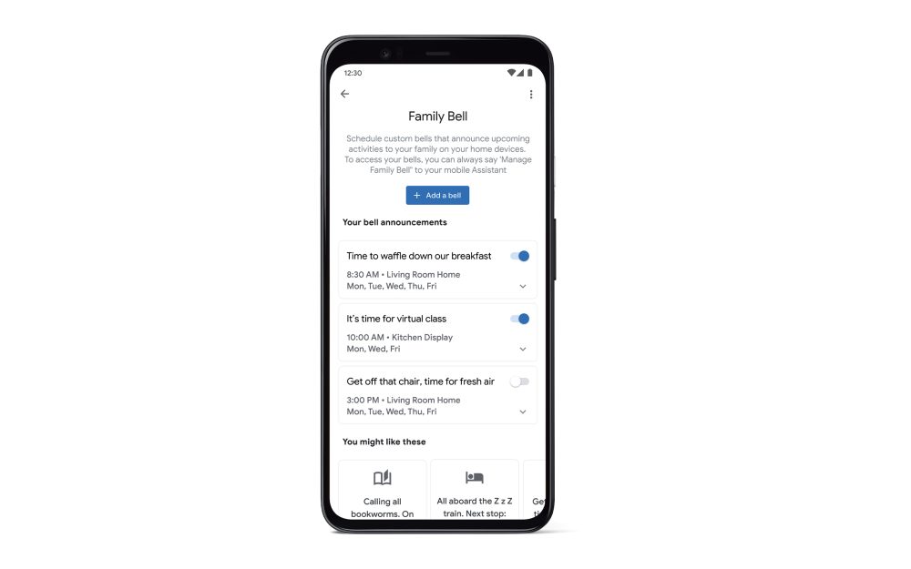 You can enable it in Assistant settings or with “Hey Google, create a Family Bell.” It works on Smart Displays and speakers with controls available on Android and iOS. One nice setting lets you have different bells invoke simultaneously on different devices: