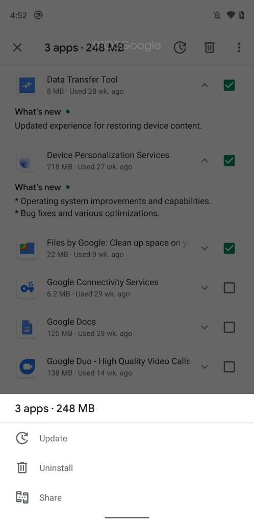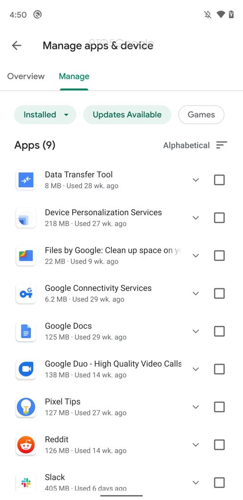 Since last year’s Material Theme revamp and dark theme, the Play Store for Android has remained relatively unchanged. Google Play is now working to redesign the “My apps” list, which will soon be called “Manage apps & device,” while we also activated a more integrated P2P sharing experience today.