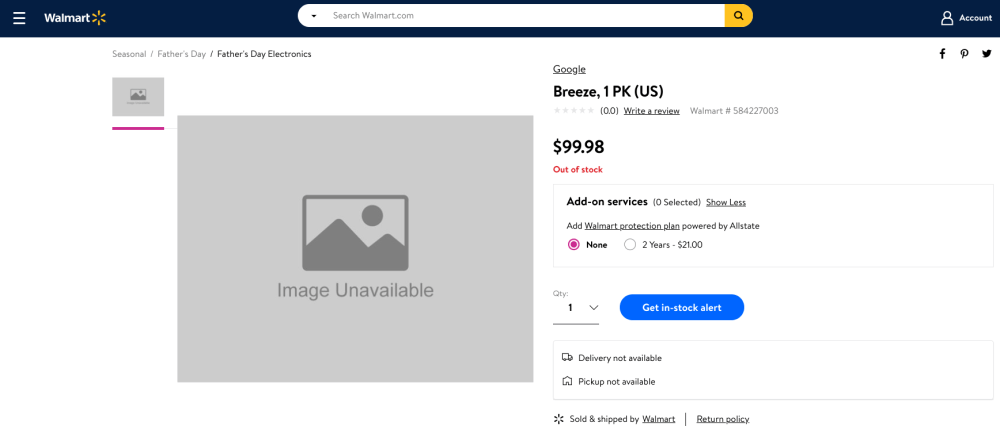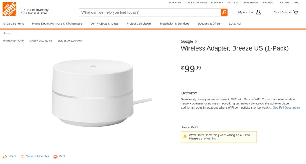The final pieces of the puzzle come from Walmart and Home Depot, as both retailers briefly had listings online for a “Google Breeze Wireless Adapter.” More importantly, both Walmart and Home Depot included a $99 list price for this device. Early information from retailers does not always reflect the final price, but it’s interesting that both were in the same ballpark.