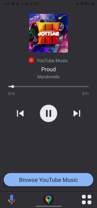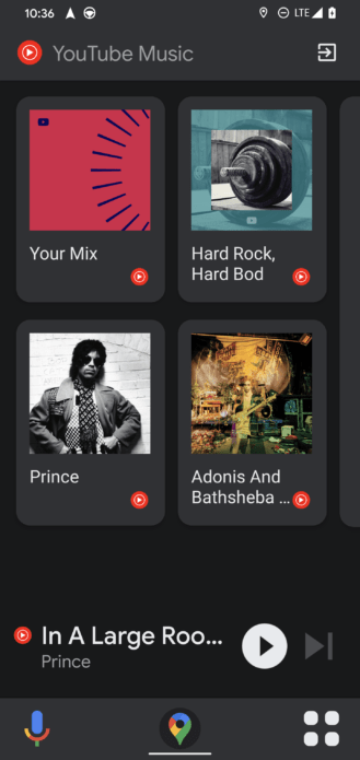 It looks like YouTube Music includes a dedicated sub-menu and interface for accessing your favorite playlists and tracks quickly. Google is clearly pushing YouTube Music as the perfect companion music service for this Android Auto-style UI or car mode for Google Maps moving forward.