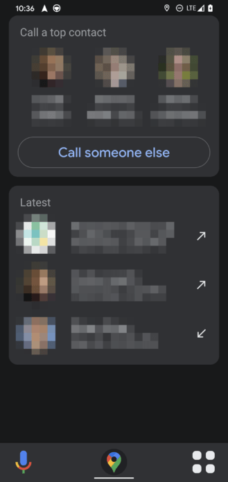 From this “home screen” you can select apps such as music players, messages, and access call functions. When you’re in this section, you can tap the Google Maps icon to return to your car mode navigation view. If you select the “Calls” option, you will be greeted with your three most recent contacts or three most contacted to directly dial. You also have the ability to “call someone else”, which expands into your contact book.