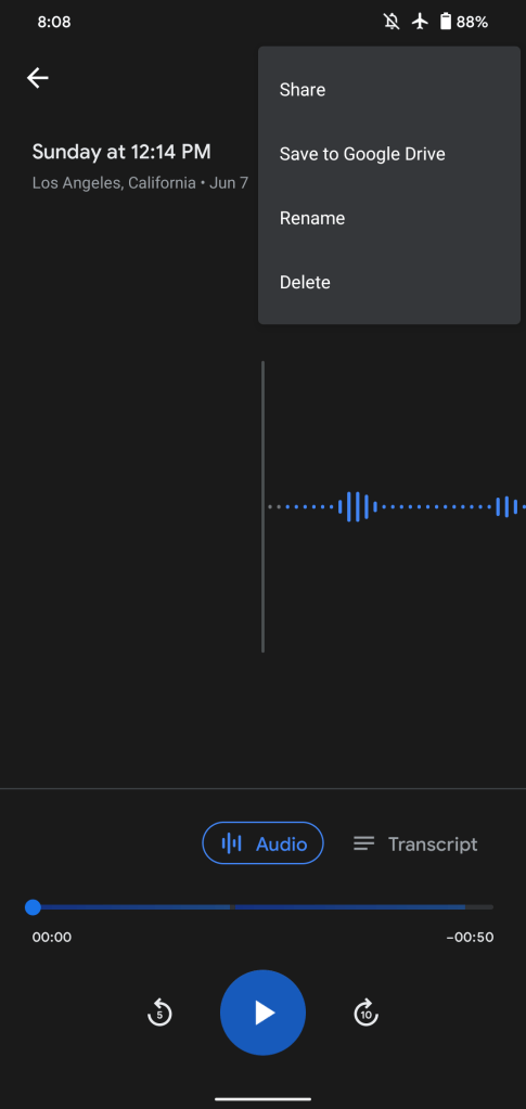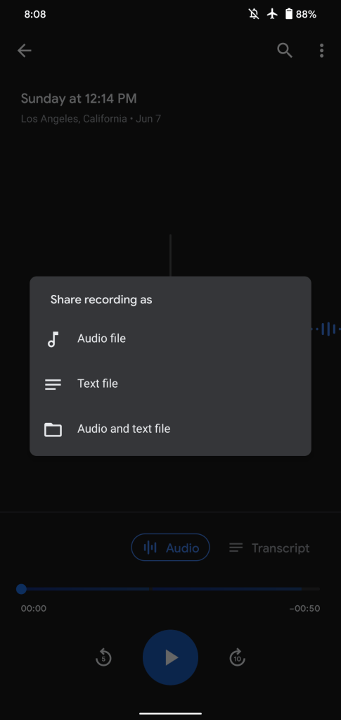 This overall change to the Google Recorder-Drive save workflow is somewhat inconvenient as users now have to separately upload the audio and text file.