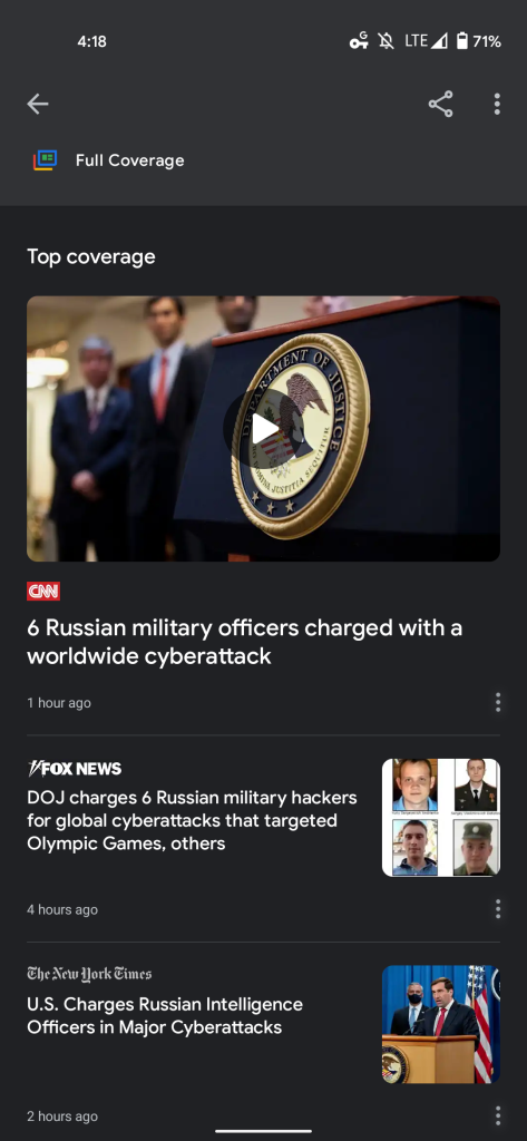 Meanwhile, some stories will feature a four-color newspaper icon. This is the Tech News full-coverage feature that provides additional context and viewpoints about a subject, with another feed opening in Discover. Not all stories get additional information, only major occurrences.